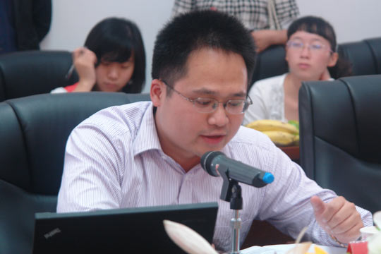 高亦鹏(主持人):接下来为大家介绍一位重量级的博士——熊琦博士。熊博士的本科生毕业论文写了三万字,硕士论文写了十万字生,博士论文写了几十万字,并且在诸多篇核心刊物上发表论文,熊博士还得到了北京一家著名知识产权服务机构的奖学金,获得过“中国人民大学学术新星”的荣誉称号,今天熊琦博士成为了中南财经政法大学法学院的青年教师。