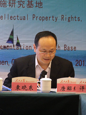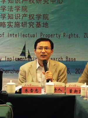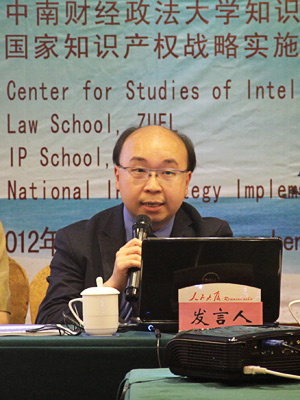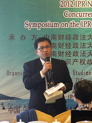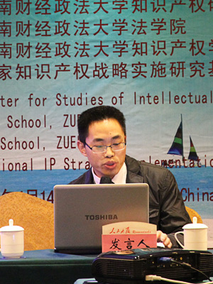 2012年4月15日上午,分论坛二的与会嘉宾承继知识产权战略实施的主题,进行了进一步的探讨。此次研讨会由中南财经政法大学知识产权研究中心副主任彭学龙教授主持,武汉市知识产权局董宏伟局长、中国知识产权研究会副秘书长、马秀山副研究员、华侨大学法学院李士林讲师分别做了主题演讲。