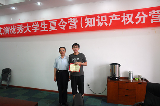 2013年7月15日上午,首届文澜优秀大学生夏令营(知识产权分营)闭营仪式在中南财经政法大学南湖校区文泓楼四楼会议室举行。国家知识产权局原局长、国家知识产权局顾问、中国专利协会会长、中南财经政法大学知识产权学院院长王景川教授,国家知识产权局刘超处长,中国知识产权协同创新中心副主任、中南财经政法大学知识产权研究中心副主任、夏令营知识产权分营负责人赵家仪教授,夏令营知识产权分营班主任何华副教授出席了结业典礼。结业典礼由中南财经政法大学知识产权学院院长助理黄玉烨教授主持。夏令营全体二十八位营员参加闭营仪式。