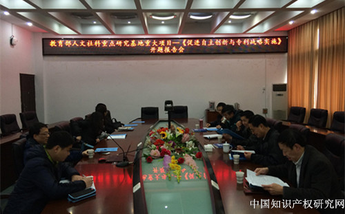 1月25日上午,由中心专职研究员、我校企业价值研究中心主任汪海粟教授主持的2014年度教育部人文社科重点研究基地重大项目“自主创新与专利战略实施”开题论证会在文泓楼四楼会议室举行。参加开题论证会专家有中心主任吴汉东教授、武汉市知识产权局局长董宏伟教授、中心常务副主任曹新明教授、副主任胡开忠教授和中心专职研究员、会计学院汤湘希教授,会议由董宏伟教授主持。