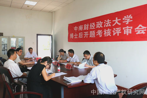 2015年9月24日上午,中南财经政法大学知识产权学院博士后谢光旗开题报告会议在文泓楼三楼会议室举行。中南财经政法大学知识产权研究中心主任吴汉东教授、中心常务副主任曹新明教授、中心副院长黄玉烨教授、中心副主任胡开忠教授、赵家仪教授、詹映副教授等评审专家出席了会议。会议由曹新明教授主持。