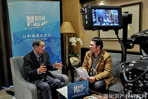 在访谈期间,主持人首先针对时下中国的“创新驱动发展战略”,向吴汉东教授问道:“要实现创新发展,您如何理解知识产权战略对创新发展的推动作用,这二者的内在关系是什么?”