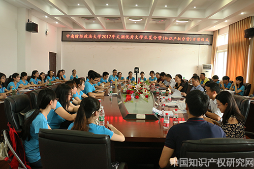 晓南湖畔赏美景,知识产权纳良才。6月10日,中南财经政法大学2017年文澜优秀大学生夏令营(知识产权分营)于文泓楼四楼会议室隆重拉开序幕。知识产权研究中心主任曹新明教授,中心胡开忠教授、黄玉烨教授、肖志远副教授、詹映副教授、徐小奔老师、马晓老师、吉宇老师出席典礼,来自全国各地不同高校的37位优秀大学生齐聚一堂。典礼有黄玉烨教授主持。