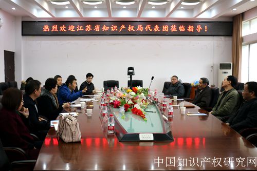 2018年3月7日下午,江苏省知识产权局施伟副局长、宣传教育曹江处长、办公室王志伟同志、扬州市知识产权局肖猛副局长、南通市知识产权局张东捷副局长、江苏大学知识产权培训基地李丹副主任等一行来我院进行交流。中南财经政法大学资深教授、知识产权研究中心名誉主任吴汉东教授、主任曹新明教授、副主任彭学龙教授、知识产权学院副院长黄玉烨教授、中心主任助理詹映副教授在中心四楼会议室接待座谈。
