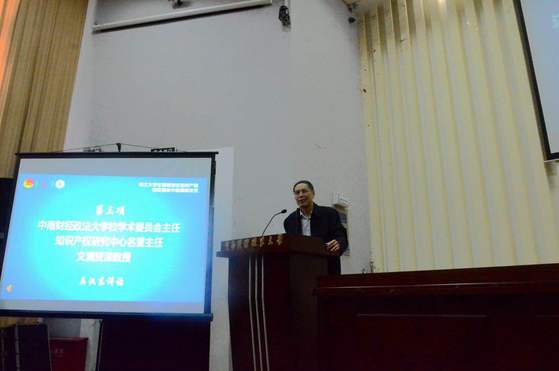 揭牌仪式后,我校知识产权研究中心主任曹新明教授以“大学生创新创业与知识产权”为题做辅导报告。曹新明教授以兴于知识产权和衰于知识产权的典型案例为示范,阐述了创新创业与知识产权的关系以及应用知识产权保护创新创业的重要性,并给出了具体实践中如何操作的意见建议。