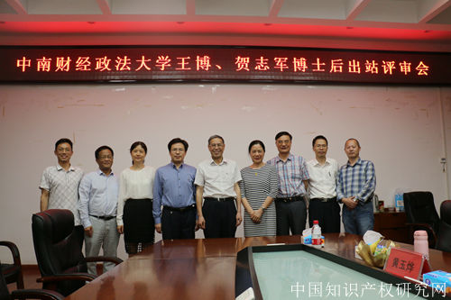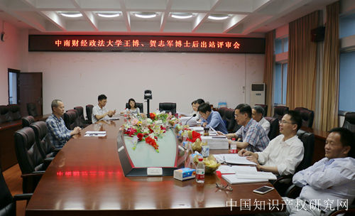 5月23日,中南财经政法大学法学博士后流动站王博、贺志军博士后出站评审会在知识产权研究中心四楼会议室顺利举行。本次评审委员会主席由武汉大学宁立志教授担任,华中师范大学刘华教授、我校知识产权研究中心吴汉东教授、曹新明教授、胡开忠教授、黄玉烨教授、彭学龙教授共同组成评审团参与评审考核。