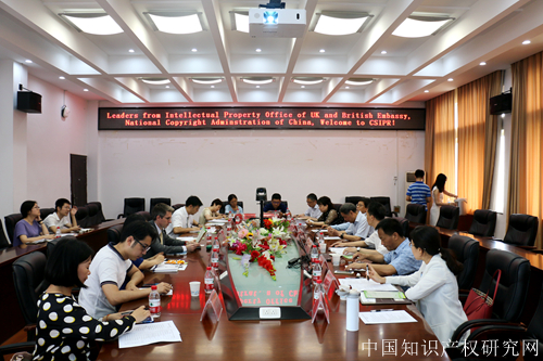 6月28日,英国知识产权局、英国驻华大使馆、中国国家版权局领导到访我校知识产权研究中心进行交流。英国知识产权局版权与知识产权执法司司长Ros Lynch女士,英国驻华大使馆、知识产权专员Tom Duke先生、石慧女士,中国国家版权局版权管理司汤兆志副司长,中国国家版权局版权管理司胡萍处长出席本次座谈会。知识产权研究中心吴汉东教授、胡开忠教授、彭学龙教授、詹映教授、何华副教授、唐昭红副教授、王小丽博士、代高洁博士、徐小奔博士、马晓博士参加座谈会。会议由中心副主任胡开忠教授主持,马晓博士担任中方翻译。