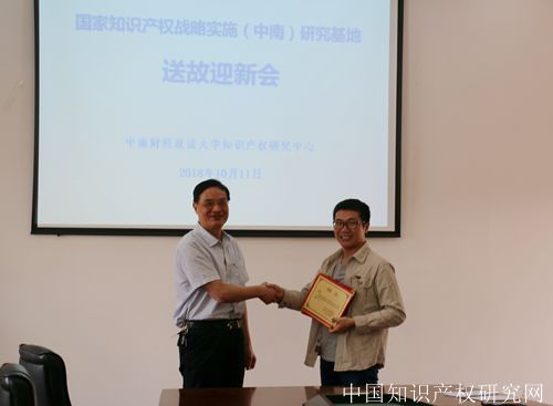10月11日下午,2018年度“国家知识产权战略实施(中南)研究基地送故迎新会” 在我校知识产权研究中心四楼会议室隆重举行。知识产权研究中心主任曹新明教授、主任助理詹映教授以及基地研究助理成员共同参加会议。本次活动由詹映教授主持。