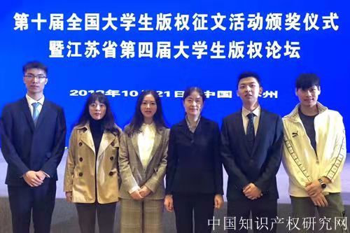 中南财经政法大学研究生和本科生在本次征文活动中再创佳绩,其中研究生徐瑛晗获特等奖,夏梦妍获一等奖,李安、曾祥瑞获二等奖,顾晨昊、王舒婷、郭雨笛获三等奖,吴汉东教授、黄玉烨教授、肖志远副教授获优秀指导老师奖,中南财经政法大学获得了优秀组织奖。部分获奖学生与老师应邀参加了颁奖大会,领取了证书并合影留念。
