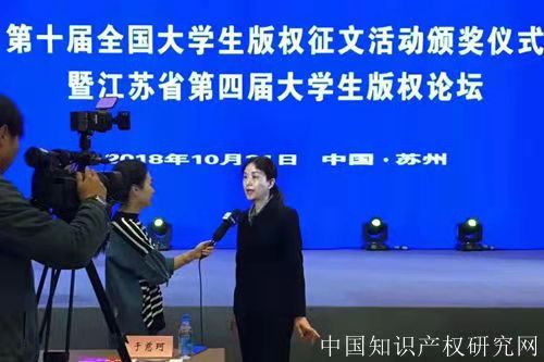 10月21日上午,第十届全国大学生版权征文活动颁奖仪式在苏州国际博览中心举行。本次活动由国家版权局主办,中国人民大学国家版权贸易基地、中国人民大学创意产业技术研究院承办。该活动的举办旨在加快我国版权强国建设,进一步推动版权入校园,强化大学生版权保护意识,提升大学生版权理论研究水平,激发大学生创新活力,为推进知识产权强国建设注入新生力量。