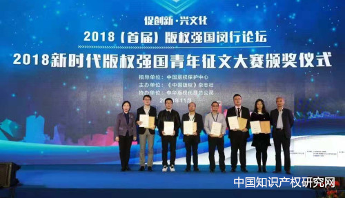 11月30日,由中国版权保护中心指导,《中国版权》杂志社主办、中华版权代理总公司协办的“新时代版权强国青年征文大赛”评审结果公布暨颁奖仪式在上海举行。本次大赛旨在倡导创新文化,全面展示新时代版权领域青年风采,使青年人成为版权强国的主力军,进而推动版权理论与实务的创新发展。