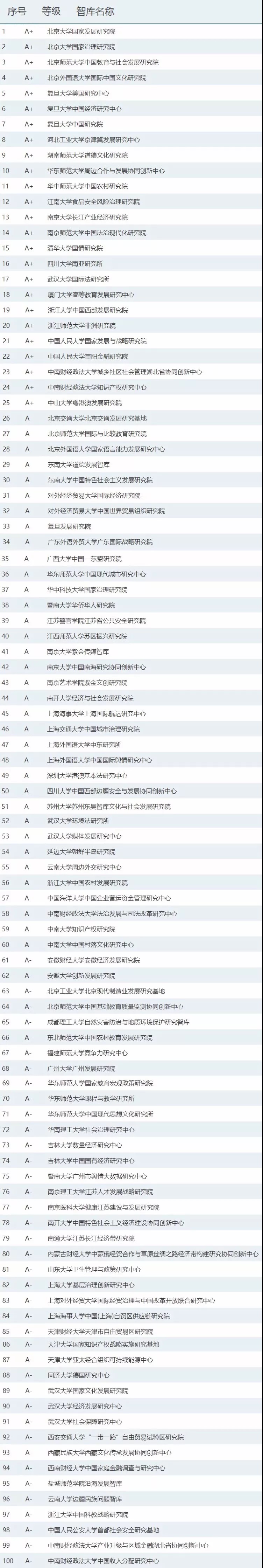 (提醒:CTTI高校智库百强榜榜单按照智库名称首字母音序排列)