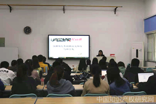 授课前,吉宇老师对专利代理师高照进行简要介绍,并对高照代理师的到来表示热烈欢迎。高照代理师以“实用新型专利申请文件的撰写和答复”为主题,结合自身实践经验,从实用新型专利申请文件撰写的作用、撰写前需满足的基本条件,实用新型专利申请文件的组成及作用、撰写要求,答复通知书,以及对申请文件的修改等方面展开讨论。课程中,高照代理师通过援引法条对实用新型专利申请方面的具体要求予以说明,并通过一些撰写实例以及说明书的范本向同学们展示了实践中的具体做法。高照代理师将法条和实务结合起来,让同学们对实用新型专利申请文件有了具象的了解。