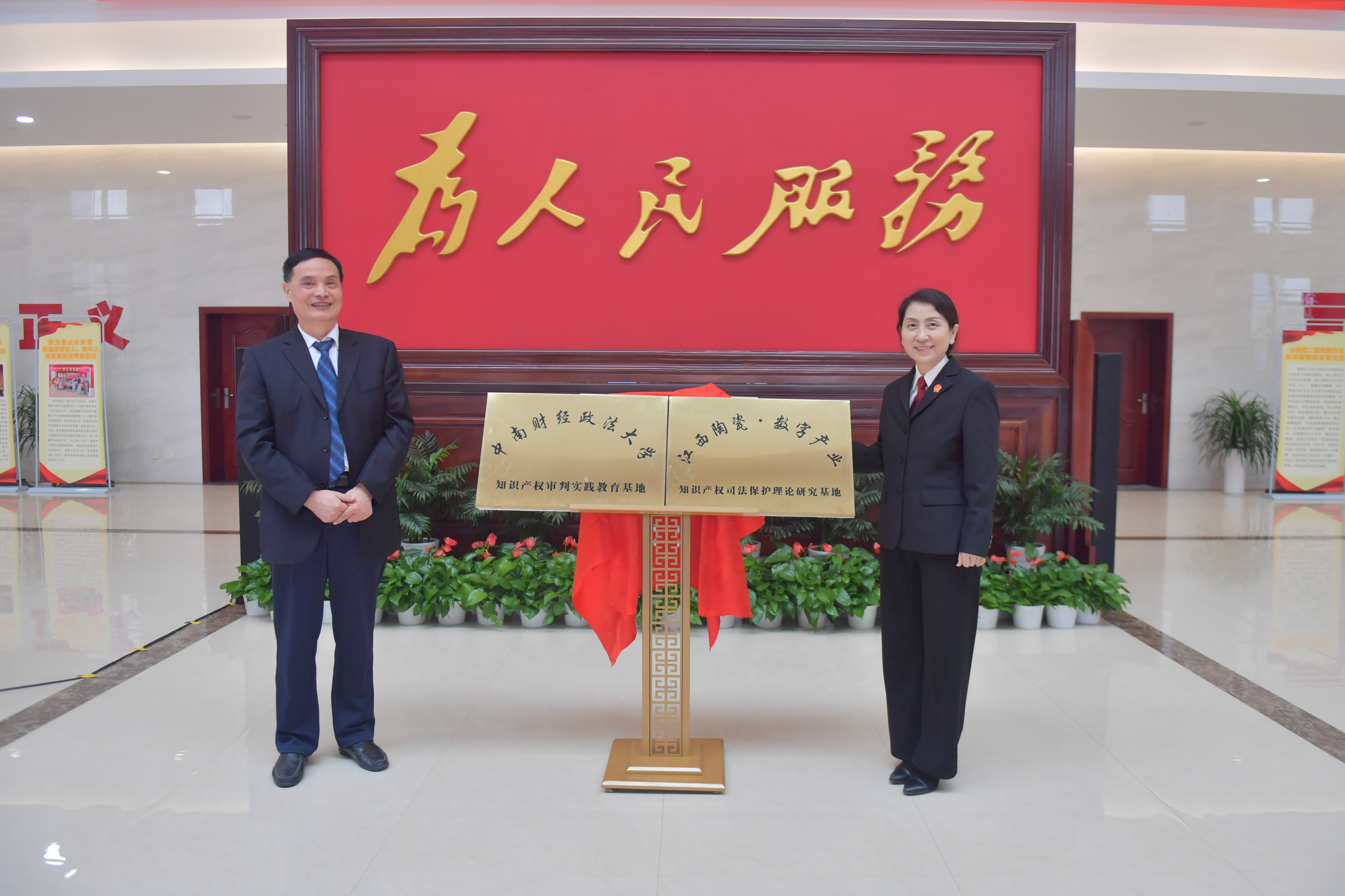 10月19日下午,由江西省高级人民法院与中南财经政法大学合作共建的“中南财经政法大学知识产权审判实践教育基地”和“江西陶瓷·数字产业知识产权司法保护理论研究基地”在江西高院揭牌。江西高院副院长胡淑珠、民三庭庭长郑红葛、副庭长罗伟,中南财经政法大学原校长、知识产权研究中心名誉主任吴汉东,知识产权研究中心主任曹新明以及彭学龙教授出席揭牌仪式。江西高院二级高级法官杜玉东主持揭牌仪式。